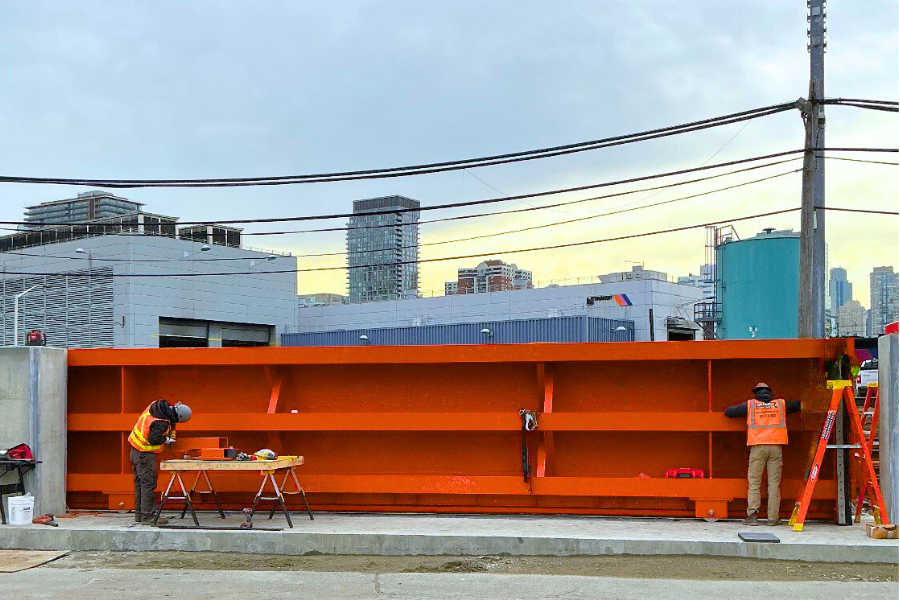 At this critical infrastructure location in downtown Hoboken, our in-house Millwright union technicians coordinated with general contractors, crane operators, city planners, engineers, and New Jersey Transit to install this massive sliding gate. Once installed, this flood gate will support citywide resiliency at one of the at-risk waterfront communities in Downtown Hoboken. Throughout the installation process, we maintained precision, safety, and accuracy at every stage – increasing protection for city residents and critical infrastructure from storm surge, high tide, heavy rainfall, and hurricanes.