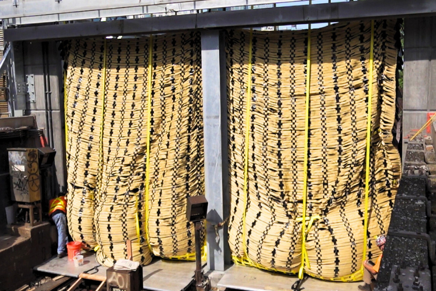 The OFC Team conducted a successful water test on this vertical deploy barrier for the NYC Subway System. With a custom 4 ft high by 27 ft wide containment tank, the deployed barrier kept the tracks dry with minimal leakage.